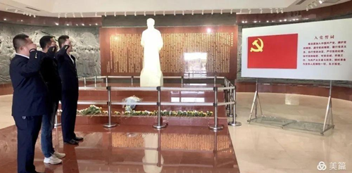 當(dāng)大家踏上象征李大釗革命生涯的38級(jí)臺(tái)階,走進(jìn)紀(jì)念館,步入威嚴(yán)、莊重的紀(jì)念館大廳,在李大釗塑像前整齊列隊(duì)、莊嚴(yán)肅立,集體默哀深深鞠躬,表達(dá)緬懷和敬意。之后,面對(duì)鮮紅的黨旗,唐山公交基層黨支部書記帶領(lǐng)兩名預(yù)備黨員緊握右拳,莊嚴(yán)宣誓。支部黨員干部集體重溫了入黨誓詞,在誓言中共同表達(dá)了對(duì)共產(chǎn)黨的無比忠誠(chéng)和對(duì)革命精神的無比敬佩。